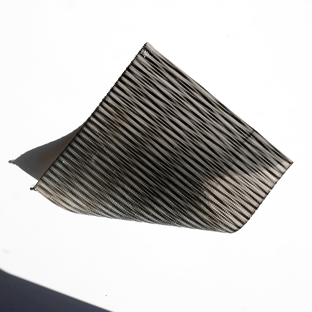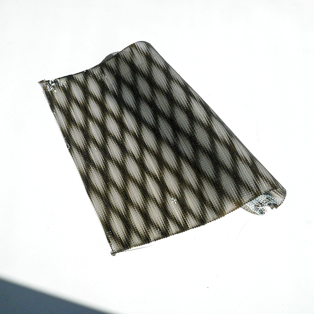 FR: Cette série d'échantillons fait suite aux résultats obtenus avec le Sample #1. Elle se compose de deux couches superposées de TPU, avec des motifs créés par des variations de vitesse. Le tissu ainsi obtenu est souple et flexible, ses caractéristiques variant selon le motif utilisé. Toutefois, le format d'impression est plus grand, passant de 50x50 mm à 200x200 mm. Sur cette surface plus étendue, les défauts d'impression sont plus fréquents, car à cette échelle, la marge d'erreur du calibrage est réduite.